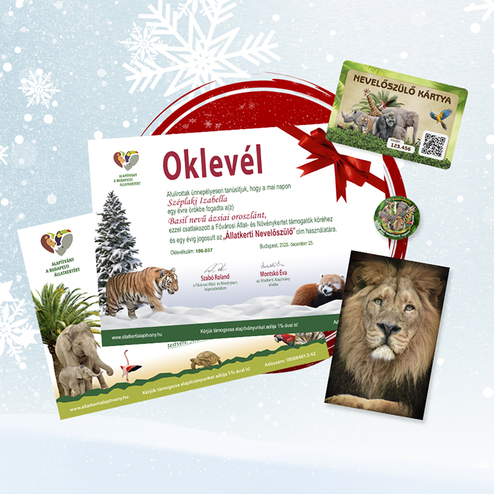 Az állatkerti kedvencek jelképes örökbefogadása minden bizonnyal nagy öröm lesz: a kiválasztott állatról az ajándékozott nevére szóló ünnepi oklevelet állítunk ki, amelyhez az állat életrajzi lapja és fényképe, illetve egy nevelőszülői kártya is tartozik, amellyel együttt élményt is adsz. A kártya díjmentes belépésre jogosít az örökbefogadók számára évente két alkalommal megrendezett különleges programon, a tavaszi és az őszi Állatkerti Nevelőszülők Találkozóján. Az esemény részeként látogatóink „szülői értekezleten” is részt vehetnek, amelyeken a gondozók beszámolnak az örökbefogadott állat mindennapjairól, hogylétéről, esetleges csínytevéseiről. (Az örökbefogadás minimum éves támogatási összege 15.000 forint, de prémium örökbefogadóink, akik 25.000 Forinttal vagy ennél többel támogatják az állatkerti lakókat plusz belépési lehetőséget is kapnak a fent említett csomaghoz.)