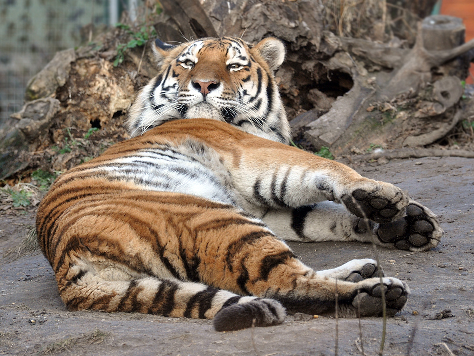 Az állatkertünk tigrisének nem adatott meg a vadászat lehetősége, friss, nyers hússal etetik őket, és nem is kevéssel. Egy tigris jóllakatásához naponta átlagosan közel tíz kiló csontos húsra van szükség: nyáron kicsit kevesebbre, télen kicsit többre, hiszen a mínuszok elviseléséhez nagyobb mennyiségű fűtőanyag kell. De a különféle formában kínált hús és belsőségek mellett időnként egy kis tojást is szoktak kapni. A napi mennyiséget egy vagy két részletben szokták megkapni, Minthogy a természetben nem mindig sikerül a zsákmányejtés a ragadozóknak, arra is ügyelnek a gondozók, hogy esetenként kiürülhessen a tigrisek emésztőrendszere.