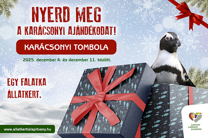 Az ünnepek alkalmával idén is karácsonyi tombolát hirdetünk, hogy segítsünk a fa alá kerülő ajándékok összegyűjtésében, és ti is segíthessetek! A játékban megnyerheted számos értékes karácsonyi ajándék egyikét úgy, hogy egyúttal az Állatkertet is támogatod! Aki december 4-11. között részt vesz adományküldő akciónkban a honlapunk Támogatás oldalán keresztül, az 500 forintonként egy virtuális tombola sorsjegy birtokosa lesz.