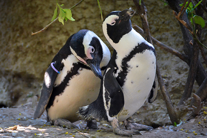 A pápaszemes pingvinek bizony monogám, hosszú távú kapcsolatban élnek, és párjukkal közösen gondozzák a fiókákat. A kolóniákban élő madarak gyakran évekig, akár életük végéig kitartanak egymás mellett. A párok közösen költik a tojásokat. Nálunk itt a Budapesti Állatkertben több párt is megfigyelhetnek a látogatók: Joy és Pofátlan régóta egy párt alkot, több fiókájuk is világra jött már, köztük például a kóborlásáról elhíresült Sanyi is (Sanyi még nem találta meg az igazit). De Skippy és Dömötör, valamint Augustus és Eumeé is a szerelmespárok közé tartozik, s a gondozók elmondása szerint jelenleg több pár is alakulgat. Stan és Pulcsi kapcsolata még az elején jár, Briant egyre több időt tölt Greta Garbo-val és Norris nevű pingvint pedig mostanság Bilbóval látják randizni. A nevek ne tévesszenek meg senkit, mivel a pingvinek előbb kapnak nevet, mint hogy kiderülne róluk a nemük, így előfordulhat, hogy egy tojó fiús nevet kap, vagy fordítva. Ezért nem szabad meglepődnünk például Elza és Rosie régóta tartó szerelmén sem, közülük Elza az, akiről később kiderült, hogy hím. Szerencsére a pingvinek nem nevek alapján választanak párt.
