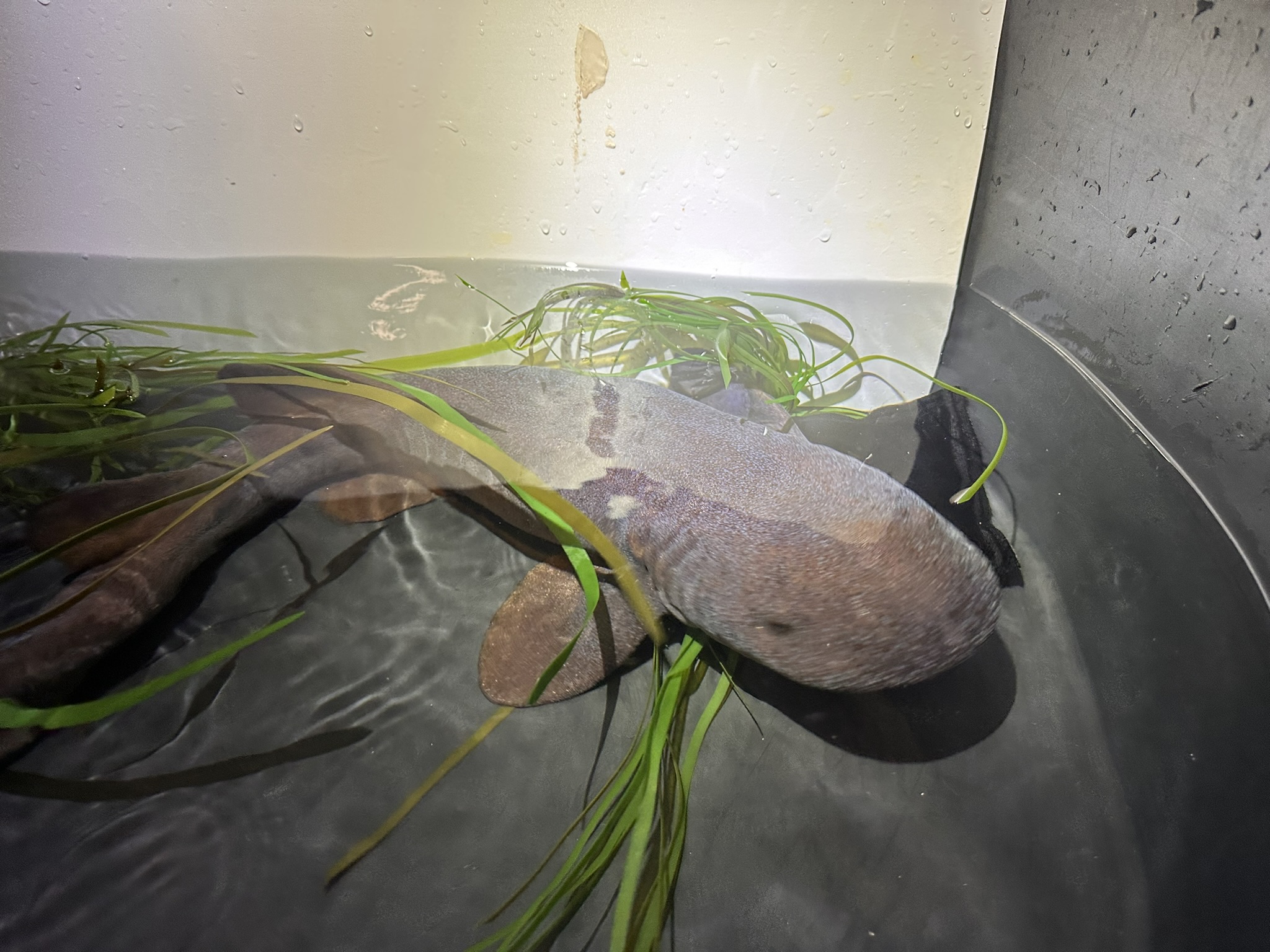 A rövidfarkú dajkacápák a kis medencénkben laknak. Szinte egész nap a kövek és a csövek között fekszenek, sokszor szokatlan pozíciókban (például hanyatt).