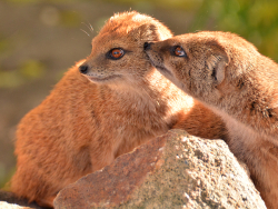 Mia, a rókamanguszta a gdanski állatkertből érkezett a Fővárosi Állat- és Növénykertbe, itt alapított családot.