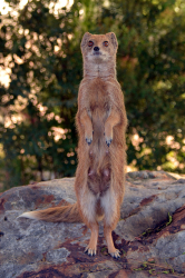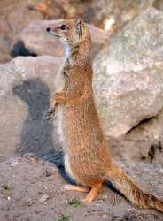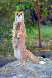Sokszor összekeverik a szurikátával, bár rokonok, hiszen a mongúzfélék családjába tartoznak, de két teljesen különbözõ faj. A rókamanguszta is gyakran áll a hátsó lábára a környezetét kémlelve, de legjellemzőbb tulajdonságai közé tartozik - ami a szurikátától megkülönbözteti - , a hosszú bozontos rókafarka és színezete.