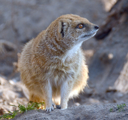 Sokszor összekeverik a szurikátával, bár rokonok, hiszen a mongúzfélék családjába tartoznak, de két teljesen különbözõ faj. A rókamanguszta is gyakran áll a hátsó lábára a környezetét kémlelve, de legjellemzőbb tulajdonságai közé tartozik - ami a szurikátától megkülönbözteti - , a hosszú bozontos rókafarka és színezete.